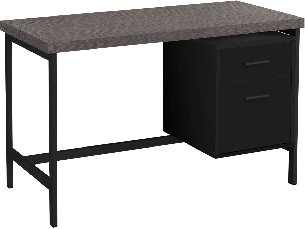 Ce bureau de travail noir avec dessus en imitation de bois gris élégant et contemporain vous offre fonction, style et robustesse tout en un. Avec ces lignes simples, construction à panneaux épais et ces pattes en métal argent, ce bureau ajoutera de l'éclat à votre espace de travail.Read More