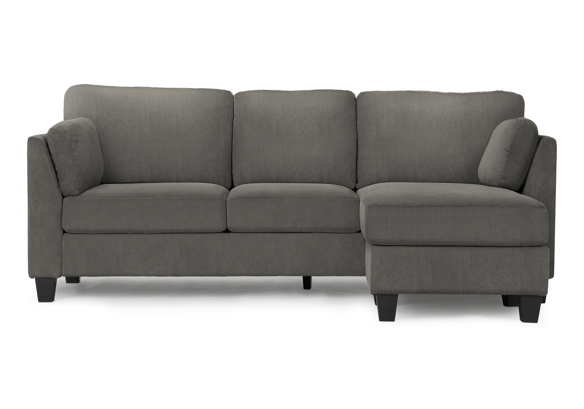 Offrez-vous le parfait équilibre entre confort, flexibilité et style avec ce chic canapé-lit à 3 places, idéal pour les espaces de vie modernes. Il est doté d'une chaise longue réversible pouvant être installée à gauche ou à droite afin de s'adapter parfaitement à l'aménagement de votre pièce. Profitez d'un confort optimal grâce aux coussins de dossier rembourrés et recouverts, aux coussins d'assise amovibles et aux généreux coussins latéraux qui créent un espace accueillant et invitant à la détente. Conçu pour un confort durable, ce canapé est muni d'un soutien à ressorts anti-affaissement, d'un rembourrage en mousse haute densité et d'une structure en contreplaqué robuste. Les accoudoirs fins et les pieds noirs effilés ajoutent une touche moderne et minimaliste qui s'intègre parfaitement aux décors transitionnels ou contemporains. L'assemblage est simple et rapide grâce aux instructions illustrées incluses, vous permettant de profiter de votre nouveau meuble en un rien de temps. Ce canapé-lit est couvert par une garantie limitée d'un an, vous assurant la qualité et la durabilité de votre investissement. Faites sensation dans votre intérieur avec ce canapé-lounge moderne, où le confort rencontre le design contemporain.