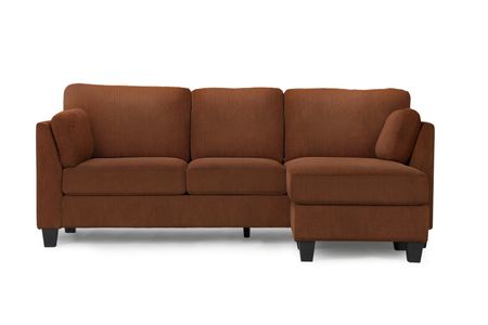 Recouvert d'un tissu couleur rouille, ce canapé contemporain avec méridienne et coussins latéraux rehausse la décoration de votre intérieur tout en offrant un endroit confortable pour se détendre et se relaxer