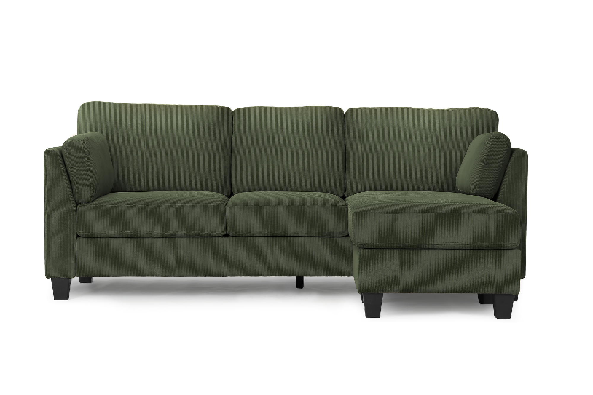 Recouvert d'un tissu vert foncé, ce canapé contemporain avec méridienne et coussins latéraux rehausse la décoration de votre intérieur tout en offrant un endroit confortable pour se détendre et se relaxer