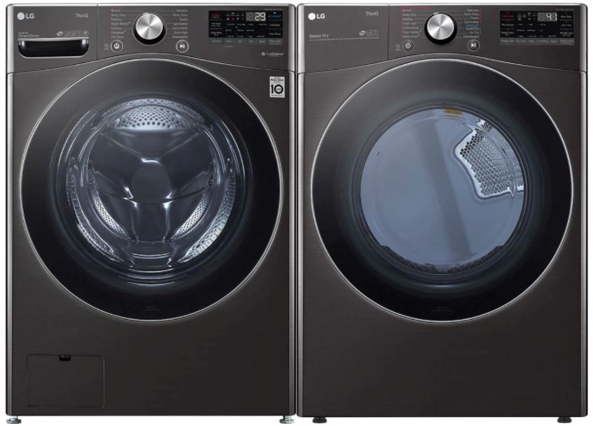 Ensemble de buanderie à chargement frontal LG® avec une laveuse d'une capacité de 5,2 pi³ et une sécheuse électrique d'une capacité de 7,4 pi³.Read More