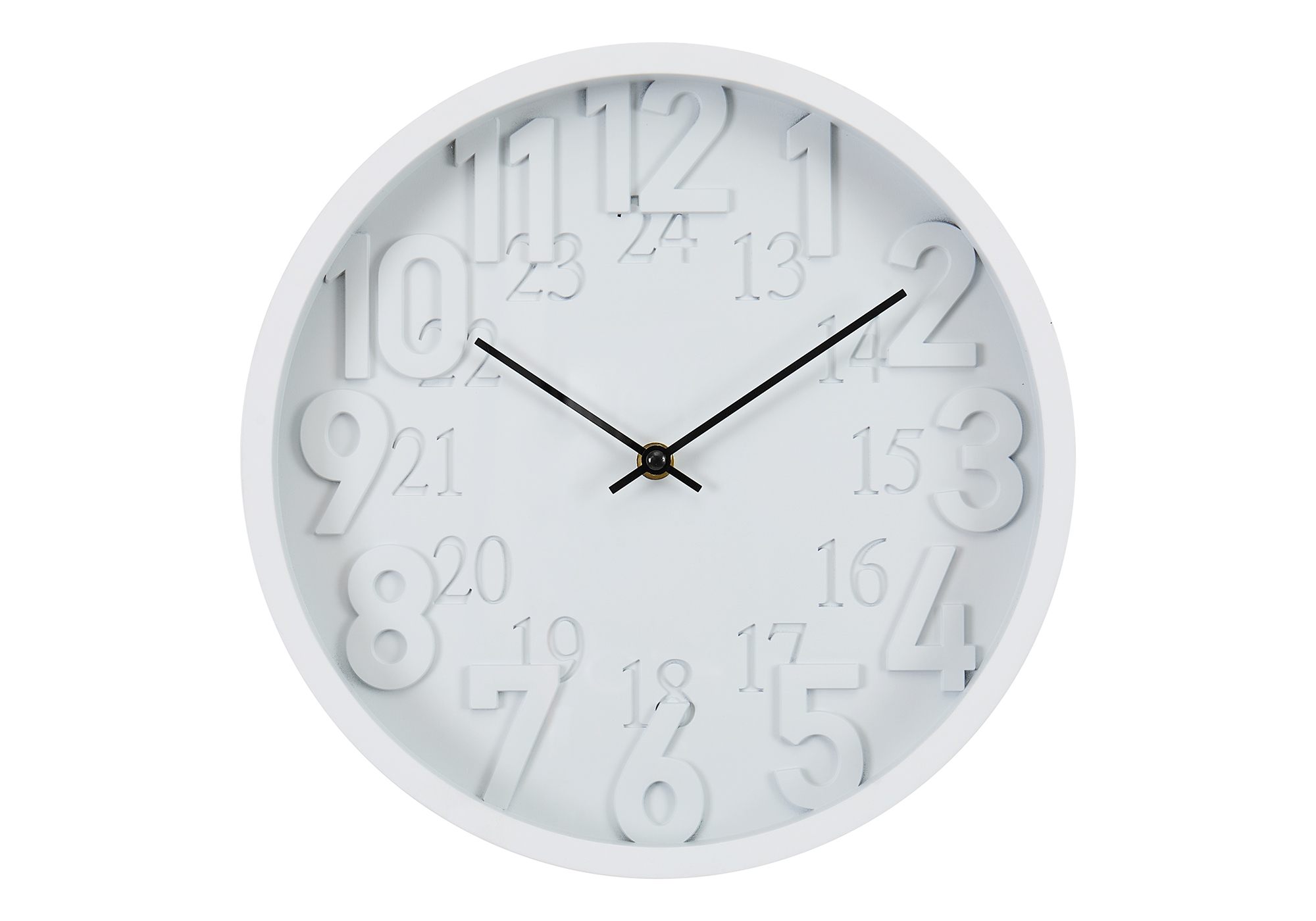 Avec son design minimaliste, cette horloge analogique est dotée d'un élégant cadran blanc et d'un cadre en plastique blanc assorti, rehaussés d'aiguilles en métal noir contrastantes, ce qui en fait une pièce décorative idéale pour le salon, la cuisine, la chambre à coucher ou les espaces jeunesse. Équipée d'un mouvement à quartz assurant une heure précise et d'un mécanisme silencieux sans tic-tac favorisant une ambiance paisible, cette horloge est parfaitement adaptée aux environnements intérieurs modernes. L'affichage numérique en relief facile à lire, présentant les formats 12 heures et 24 heures sous une surface en verre transparent, la rend à la fois pratique et fonctionnelle. Aucun assemblage requis : il suffit d'insérer une pile AA (non incluse) et de profiter de la fiabilité offerte par notre garantie limitée de 2 ans contre les défauts de fabrication. Pour usage intérieur seulement.