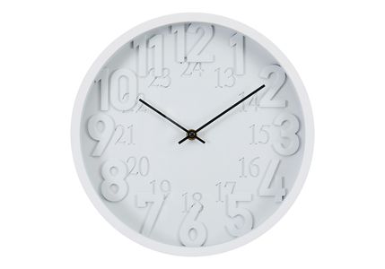 Cette horloge murale ronde contemporaine de 12 pouces présente un cadran blanc élégant et un cadre en plastique blanc, ce qui en fait l'accessoire idéal pour tout décor moderne ou espace pour enfants