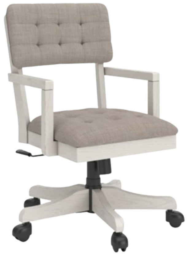 This home office desk chair is sure to impress when it’s time to study or work from home. With its antiqued white finish, cushioned seat and back covered in tufted light gray upholstery, modern farmhouse-style workstations have never been so fashionable. The adjustable seat allows you to find your sweet spot.Read More