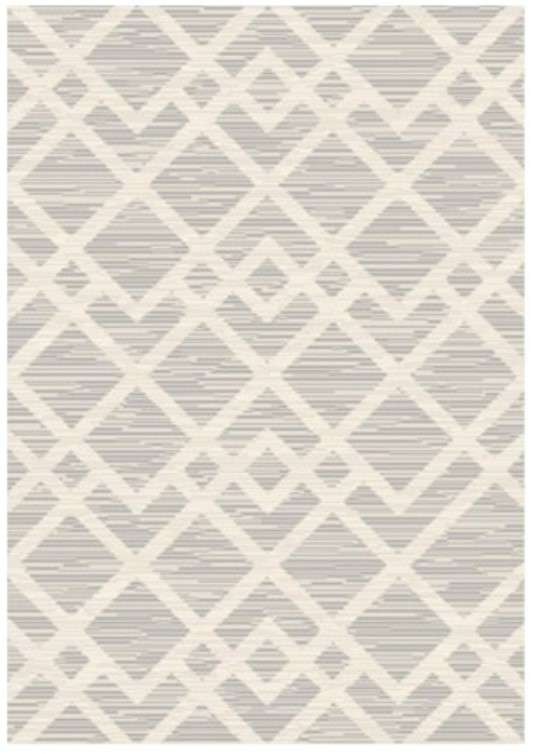 Tissé à la machine, motif géométrique dans les tons gris et ivoire